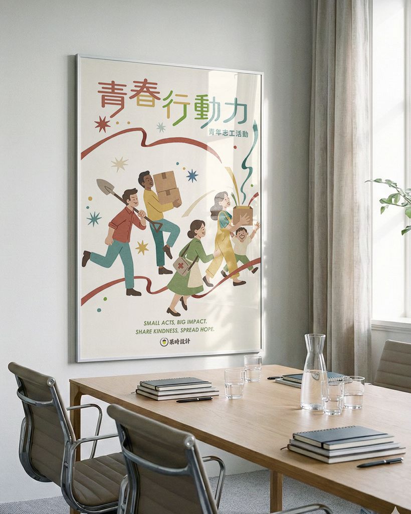 無論是流動中的觀看,或停留空間中的近距離閱讀,畫面皆能維持清楚辨識度,使志工行動的理念在不同場域中持續被看見,形成穩定而長效的溝通效果。