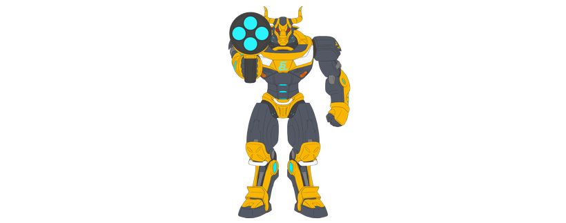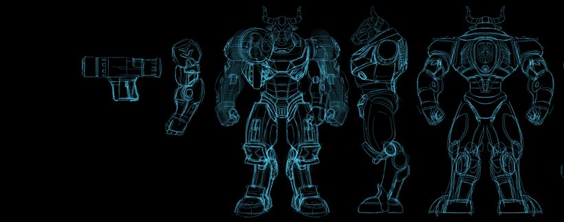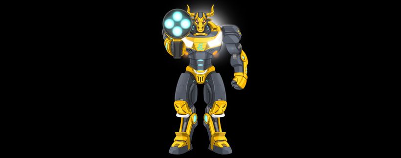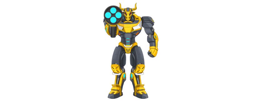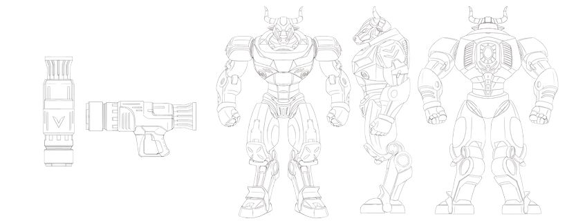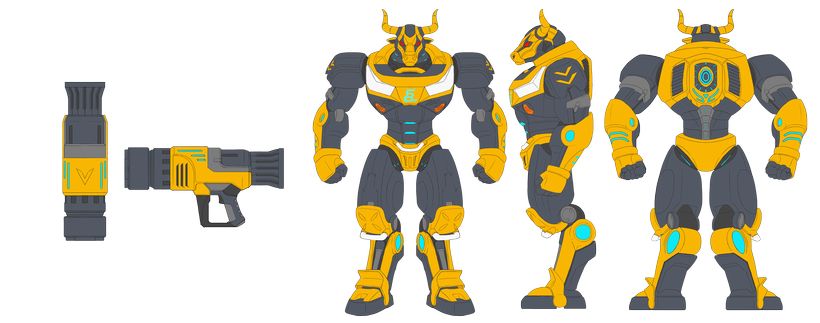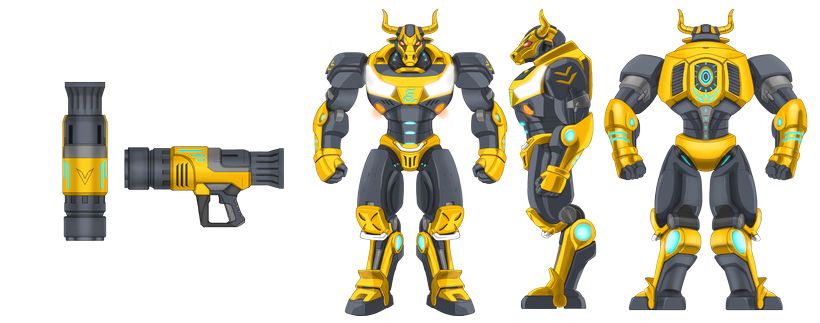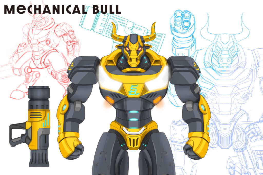 我們將傳統象徵轉化為未來科技戰士形象,使機械牛成為: