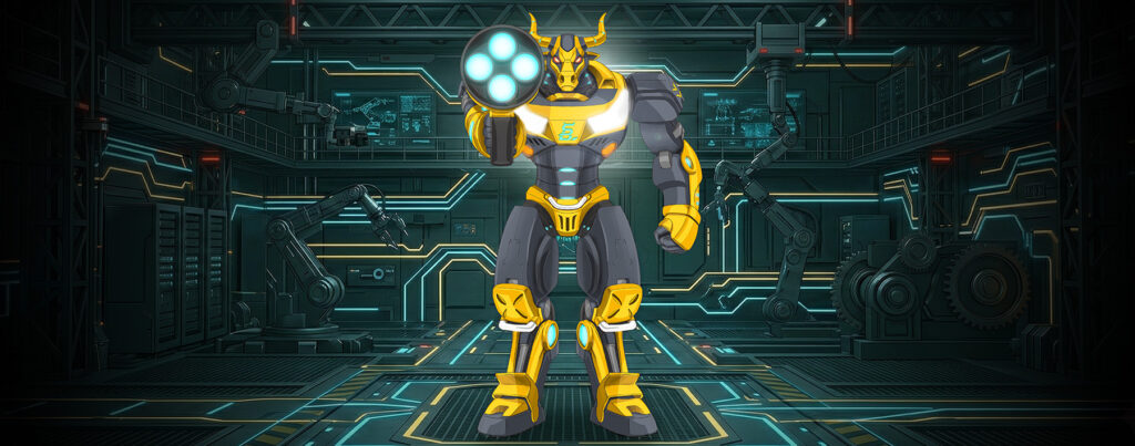 機械牛以「掌控未來動能」為核心概念,將牛的穩健象徵轉化為科技戰略人格。